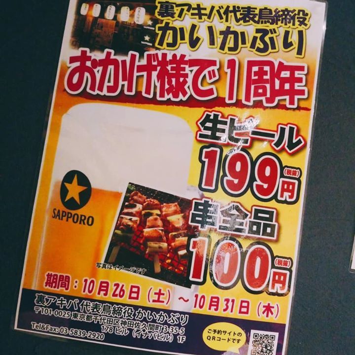 #周年イベント #誕生日 #1周年 #秋葉原 #焼き鳥 #居酒屋 #代表鳥締役 #かいかぶり #秋葉原グルメ #zans #とりわさ #やきとり #あぶり焼き #串 #焼鳥 #裏アキバ #きんかん #せせり #砂肝 #軟骨 #つくね #ささみ #もも #ネギ間 #サッポロラガービール #赤星 #大衆 #串焼き #ネオ大衆 #信玄どり