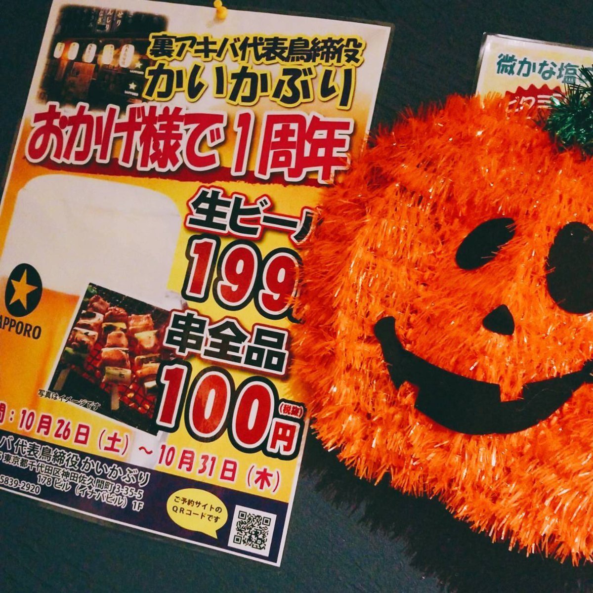 #周年 #最終日 #ハロウィン #秋葉原 #焼き鳥 #居酒屋 #代表鳥締役 #かいかぶり #秋葉原グルメ #zans #とりわさ #やきとり