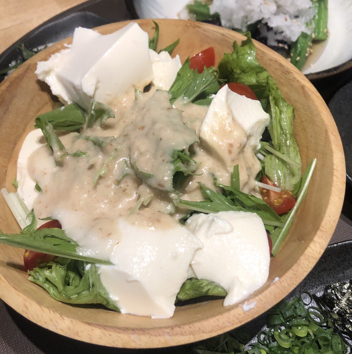 とろろ胡麻ドレッシングがよく絡んで美味しいです😋