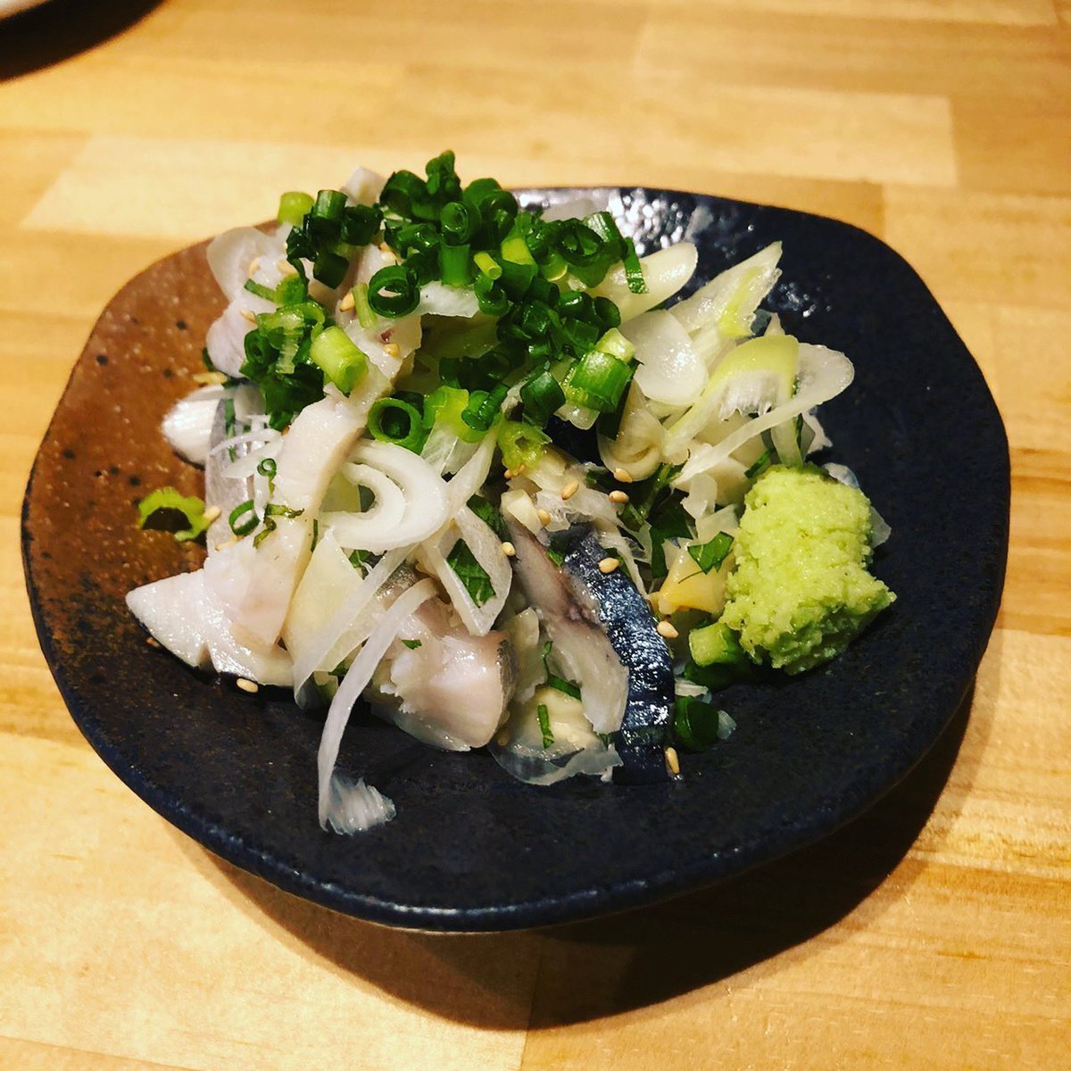 〆鯖とガリの食感、甘酸っぱさが合います👍