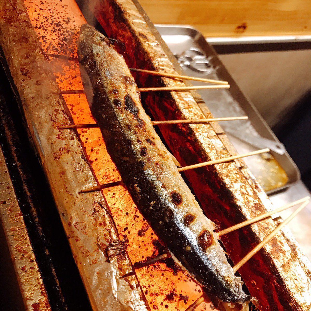 店長が常連様に振る舞う秋刀魚の串焼き🔥
