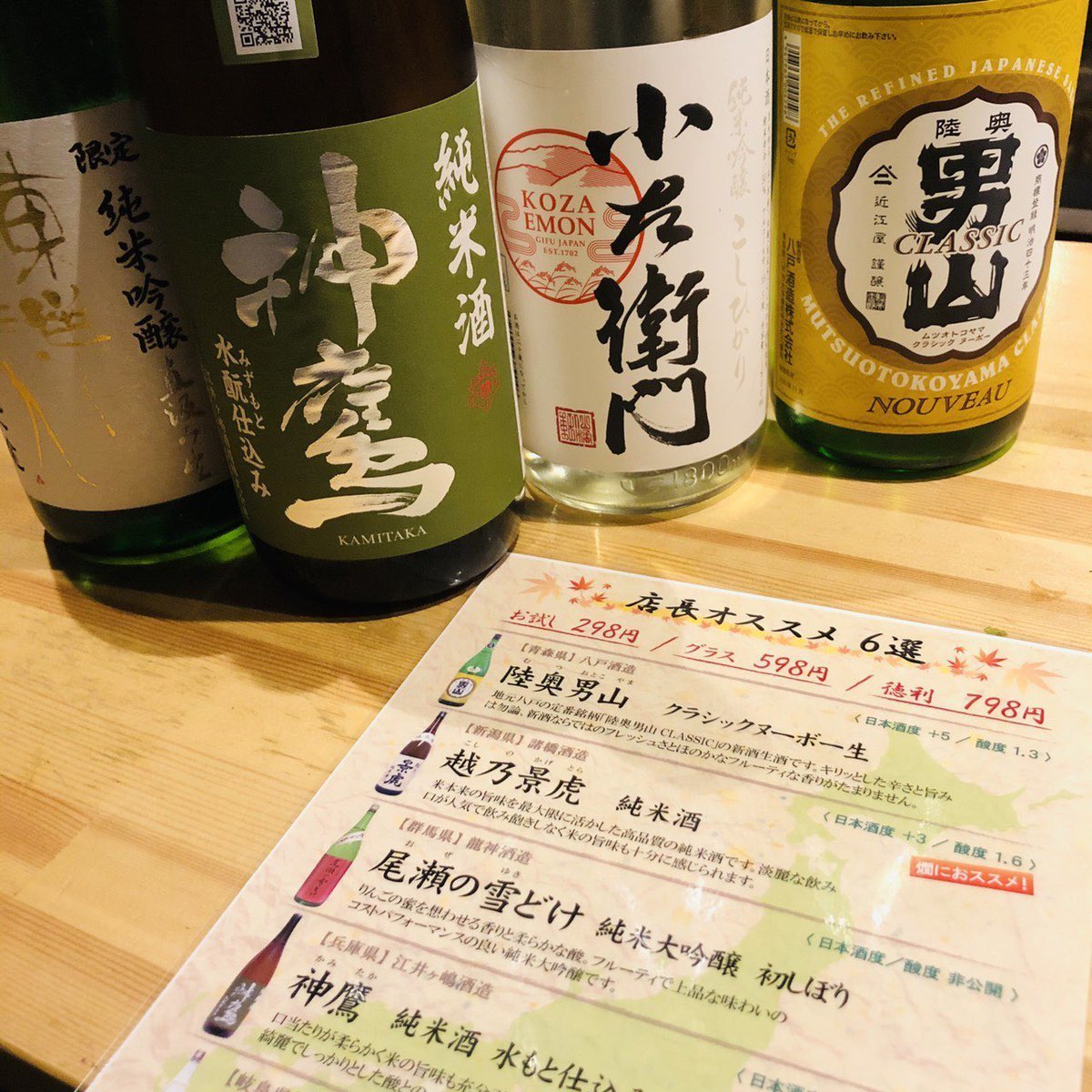 フレッシュな生酒から、燗で美味しい旨酒、こしひかりのお酒と、日本酒の幅広さが楽しめるラインナップです♪